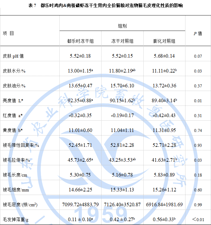 (都乐时Dolosh鸡肉&南极磷虾冻干生骨肉全价猫粮对宠物猫毛皮理化性质的影响)